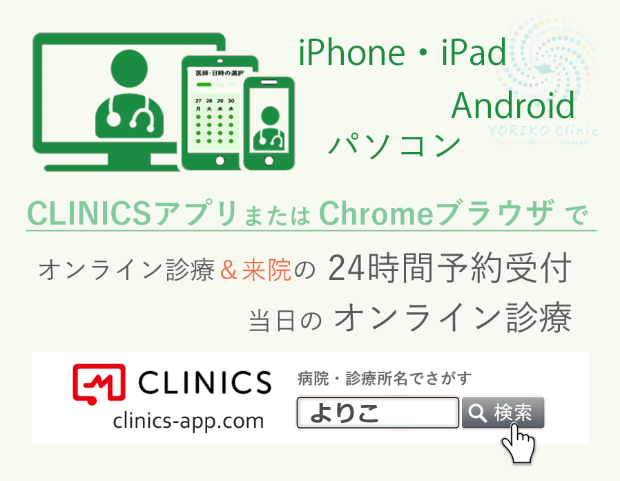 当院はCLINICS(クリニクス)という予約・遠隔医療支援システム/アプリを使用しております。